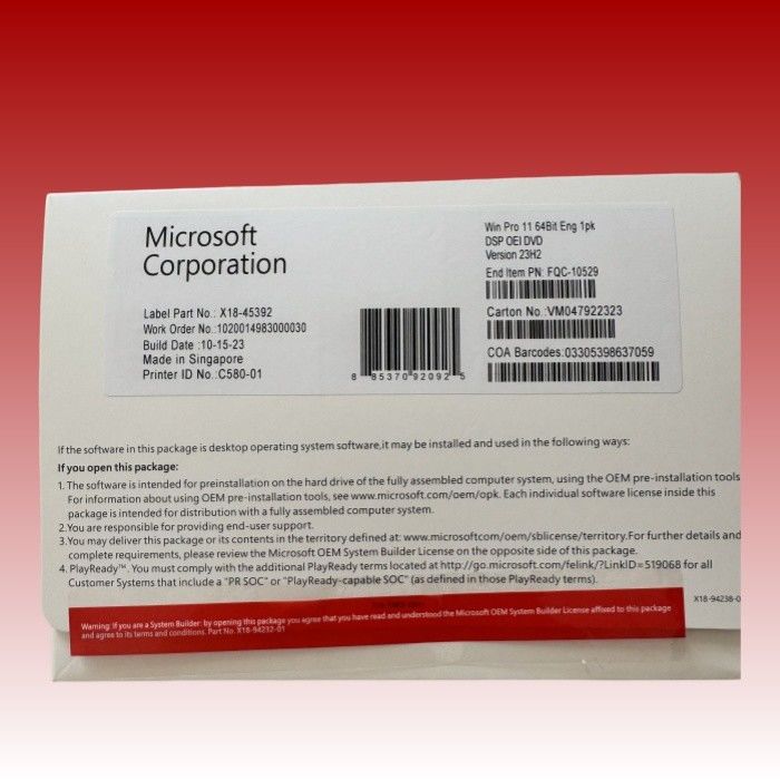 The OEM Win 11 pro Key product comes in a sealed package that includes a product key card with a unique code for activating the software. The package also contains instructions on how to download and install the operating system on your device. The package is designed to be compact and easy to store or transport.
